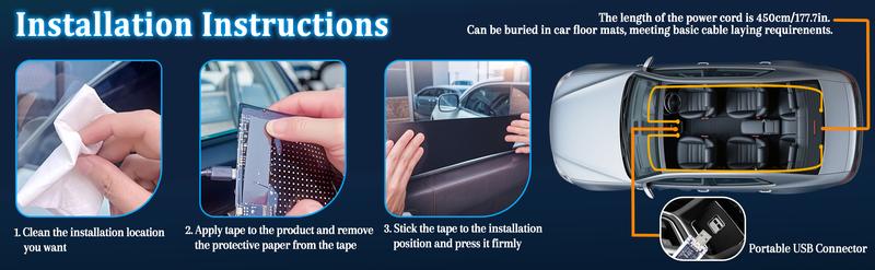 - Easy Installation: The flexible led lights is equipped with a 4.5m USB port cable and a pair of 3M tape, making it easy to install and firmly attached. The flexible led lights are made using PU+FPCB glue dropping technology, which can be freely bent to better adapt to the curvature of car windows and reflect better dazzling effects.
